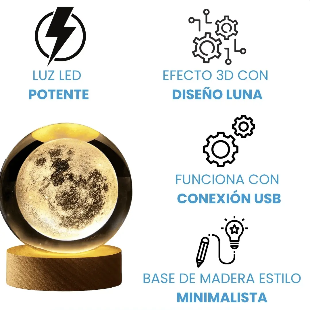 ¡Iluminá tus noches con la magia de la luna llena! 🌕 Presentamos esta sofisticada lámpara que combina el arte del grabado láser 3D en cristal con la calidez de la madera natural. Perfecta para transformar cualquier rincón de tu hogar en un espacio acogedor y mágico. 🪵💡