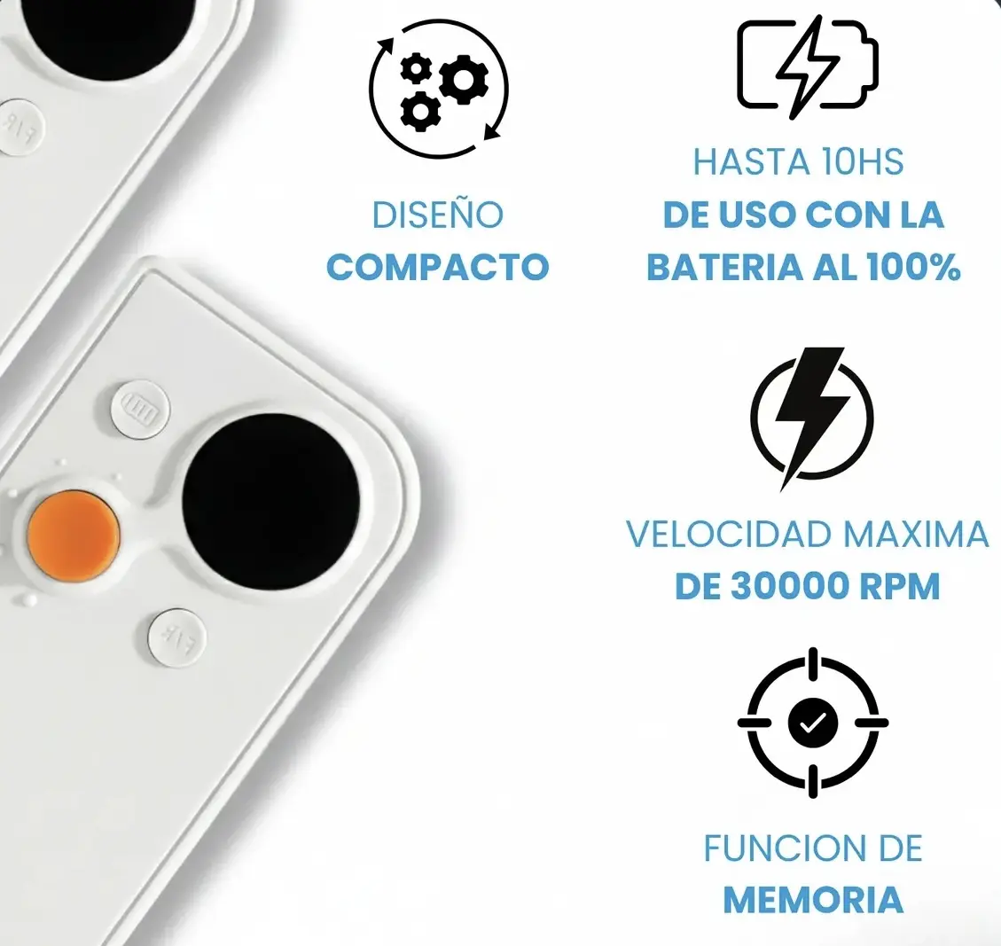 • Potencia Real de 30000 RPM: Rendimiento profesional para limado y remoción de gel o acrílico sin esfuerzo. ⚡